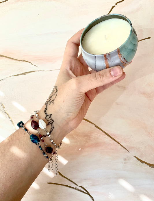 Boucles d’oreilles celtiques marbre beige et rose ~