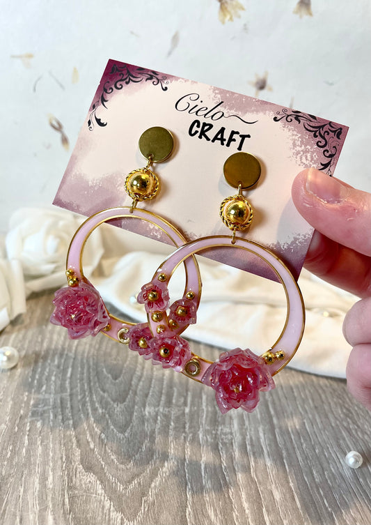 Boucles d'oreilles fleur de lotus rose en puces ~