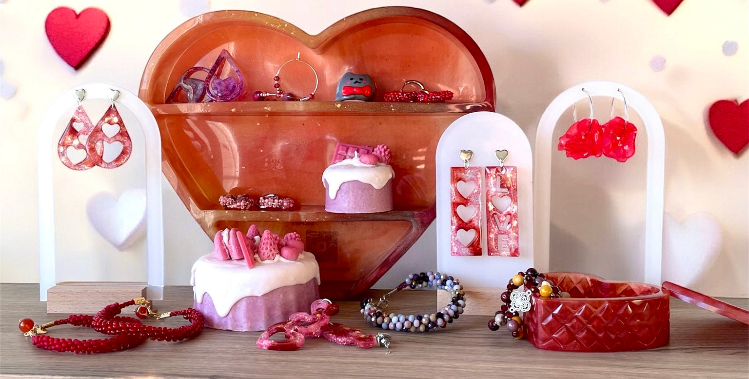 Retrouve nos bijoux, bougies et créations sur le thème de la fête des amoureux !