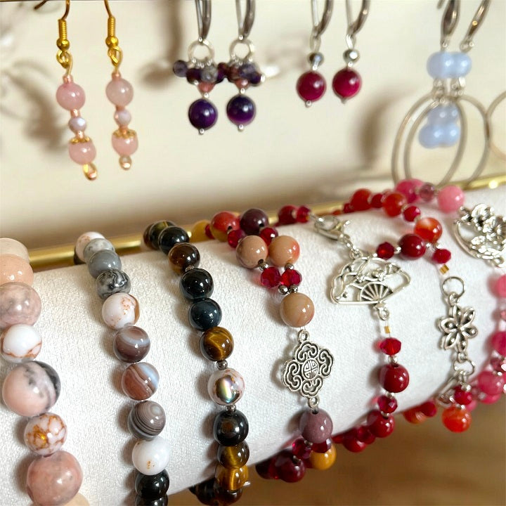 Boucles d’oreilles créoles perles et pierres naturelles ~