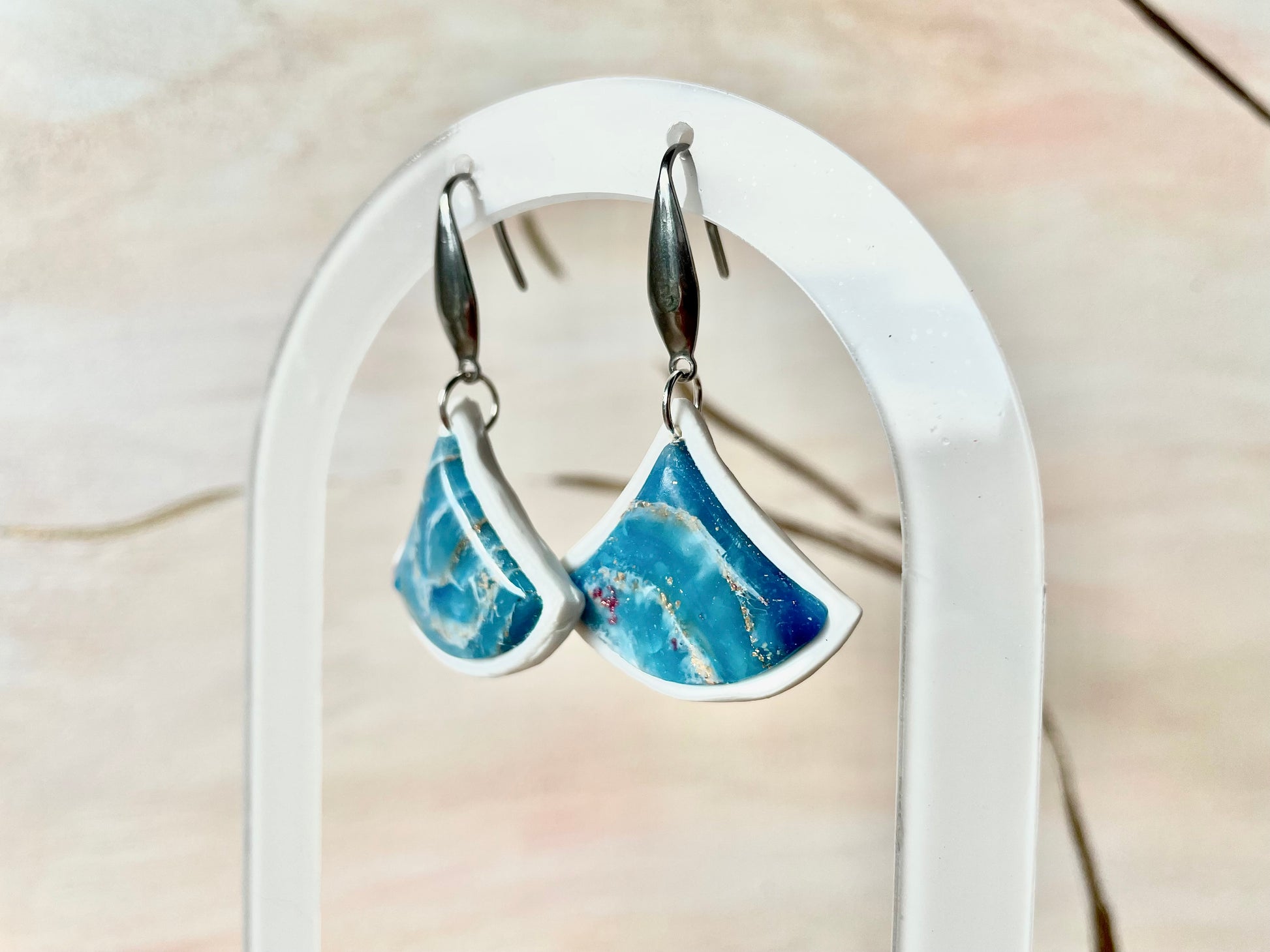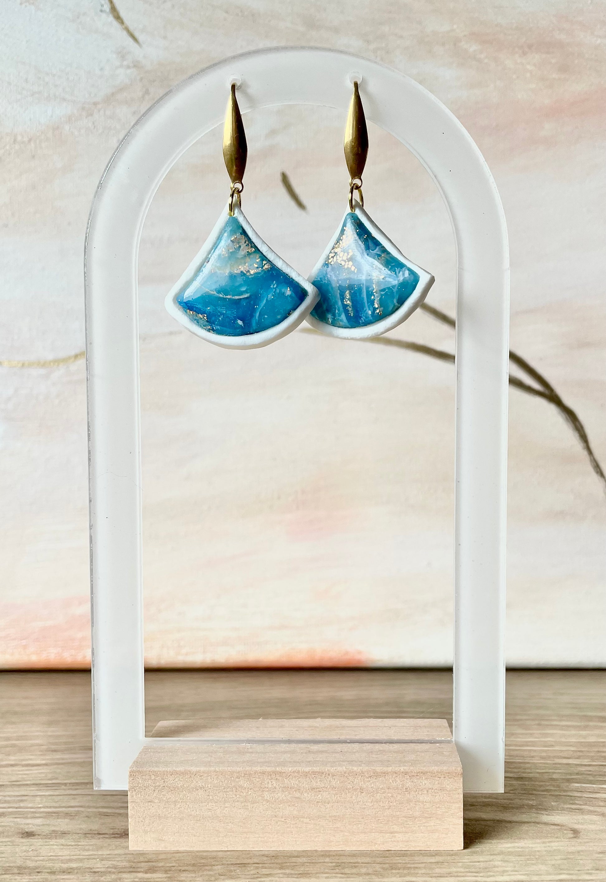 Boucles d’oreilles avec fake stone azur pendants seigaiha ~