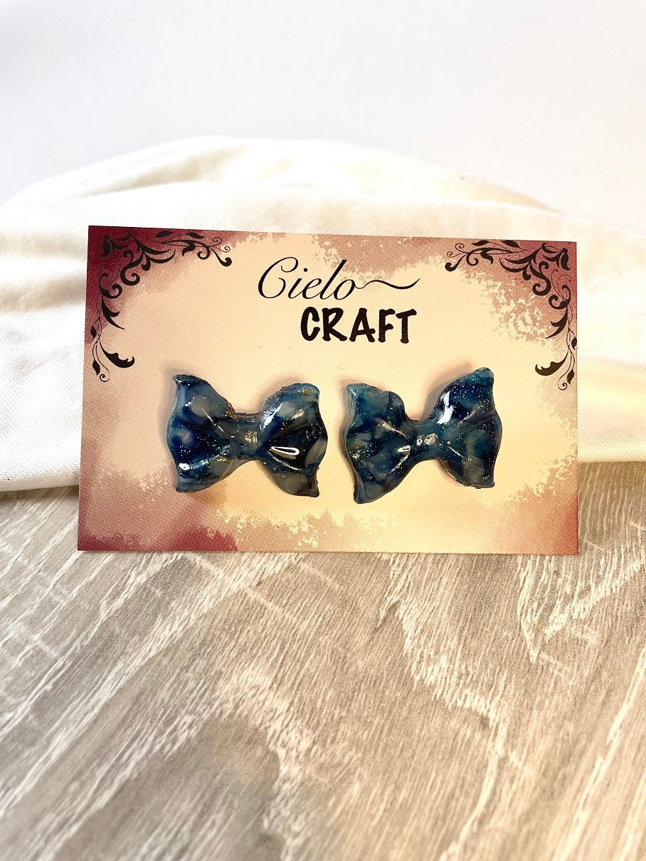 Boucles d'oreilles en pâte polymère effet fausse pierre couleur bleu nuit parfaites pour porter pour soi ou pour offrir :) Des petits nœuds discrets et adorables !