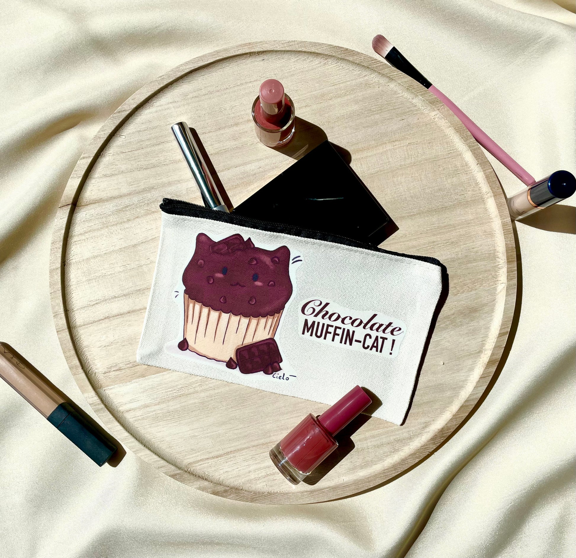 Trousse plate personnalisable muffin-cat ~