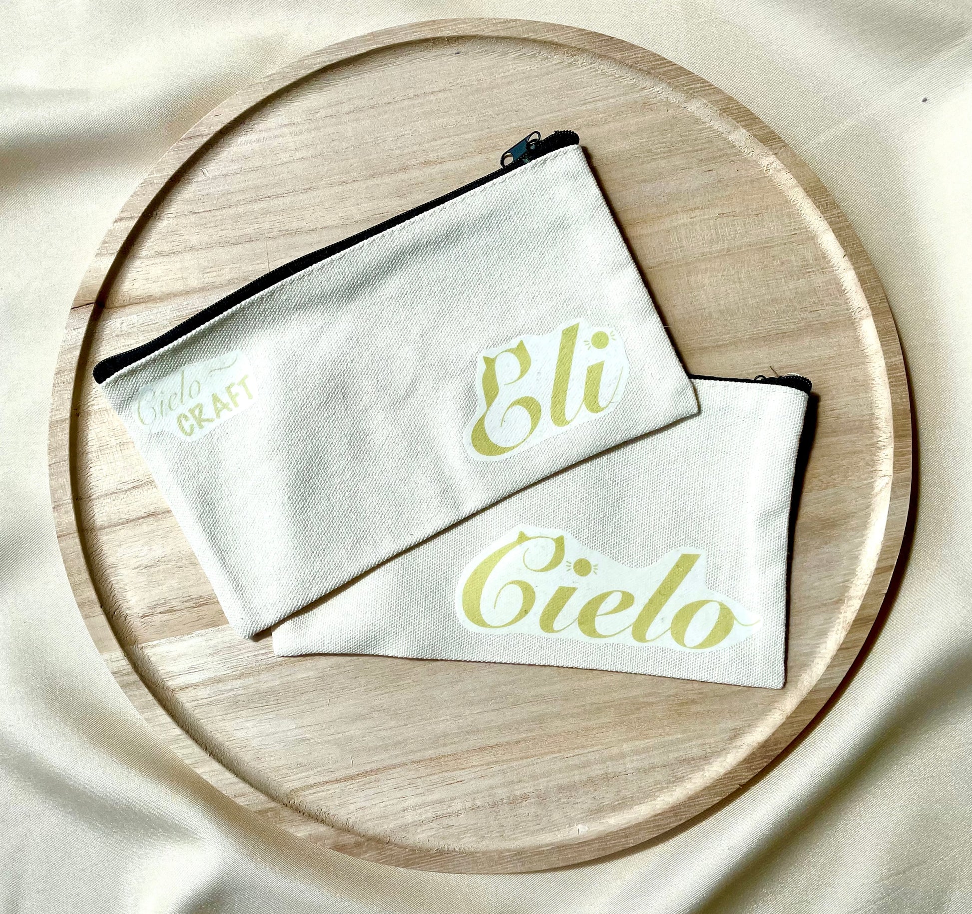 Trousse plate en toile de coton, de 21 x 13 cm avec imprimé thermocollant, lavable en machine à laver.